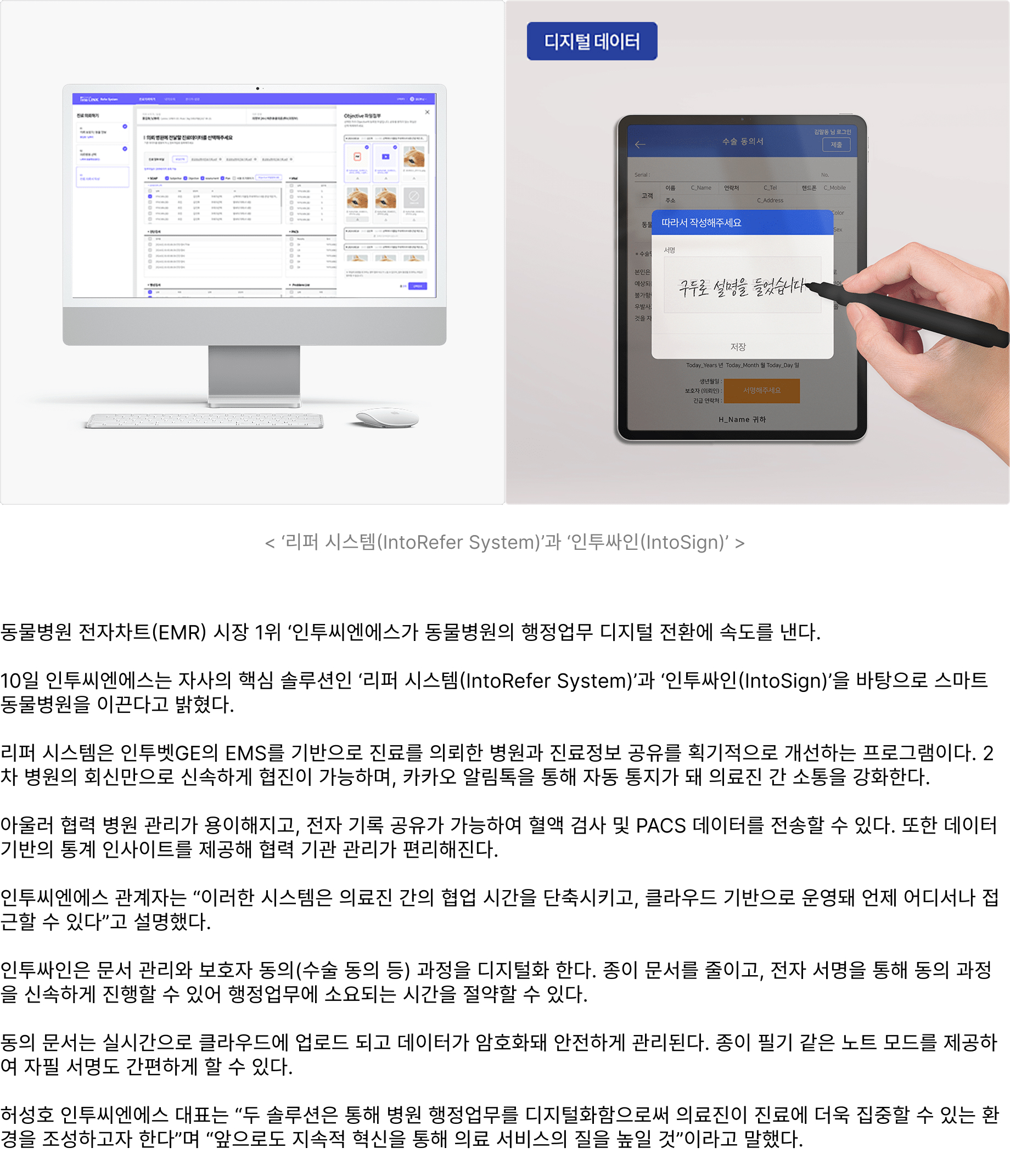 ‘EMR 1위’ 인투씨엔에스, 동물병원 행정업무 ‘디지털 전환’ 속도 낸다 -핵심솔루션 리퍼시스템, 인투싸인 눈길 등록일 2025-03-10 다음글 "집사님들 고민 해결"…인투씨엔에스, AI접목한 동물병원 의료 솔루션 선봬 2025-05-15 이전글 인투씨엔에스, 미래지향적인 차세대 ‘스마트 동물병원 시스템’ 2025-02-24 목록
