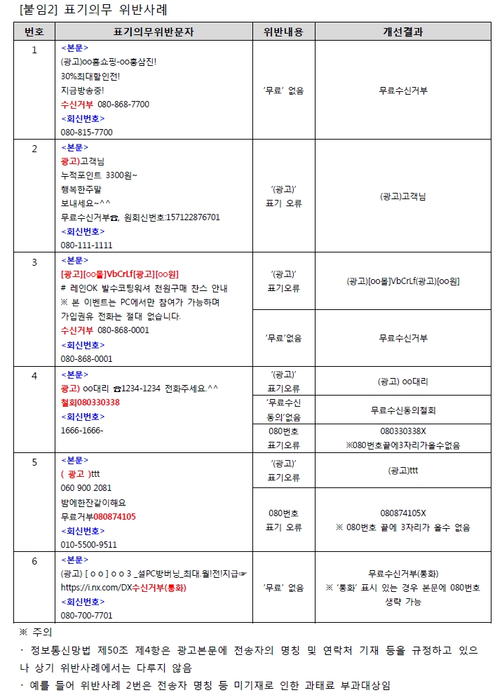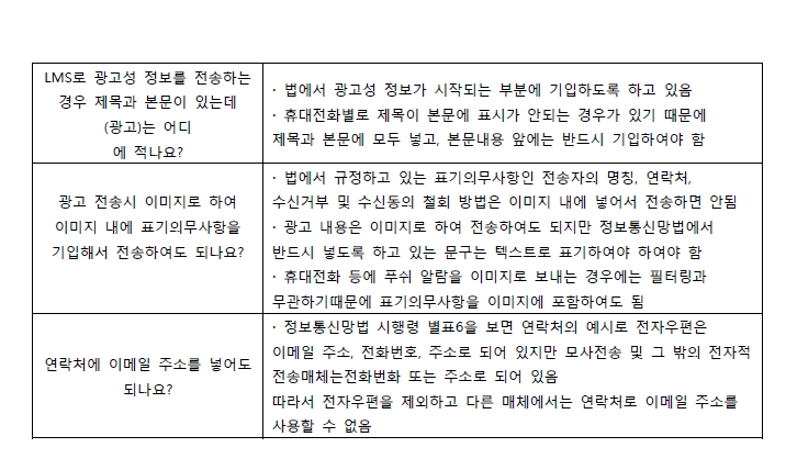 | [필독] 문자 메세지 발송 시 준수 사항 |
