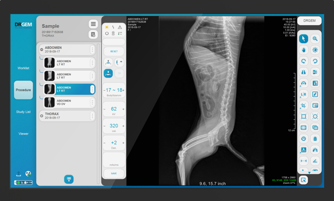 추가로 저전압, 고출력 정격과 낮은 조건 값으로 고 사양 이미지 획득이 가능하며, 43x43 동일한 Size의 Detector를 제공해 드립니다. 동물 병원 전용 DR Software를 통해 진료 환경 개선, 차별화된 영상진단 솔루션을 제공해 드리도록 하겠습니다.