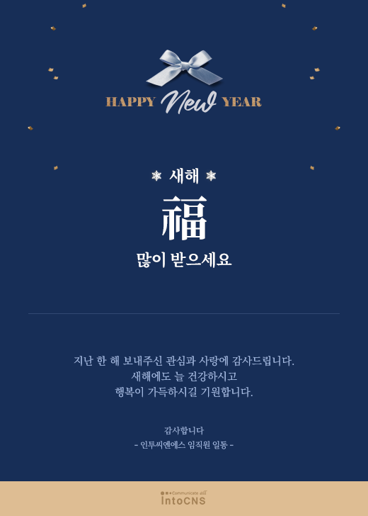 2024년 갑진년(甲辰年) 안녕하세요. (주)인투씨엔에스입니다. 2024년 갑진년 새해를 맞아 인사 드립니다. 지난 한 해 보내주신 관심과 사랑에 감사드립니다.