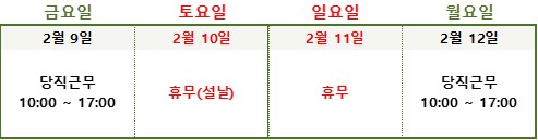 - 연휴기간 고객지원 업무 시간 안내 -