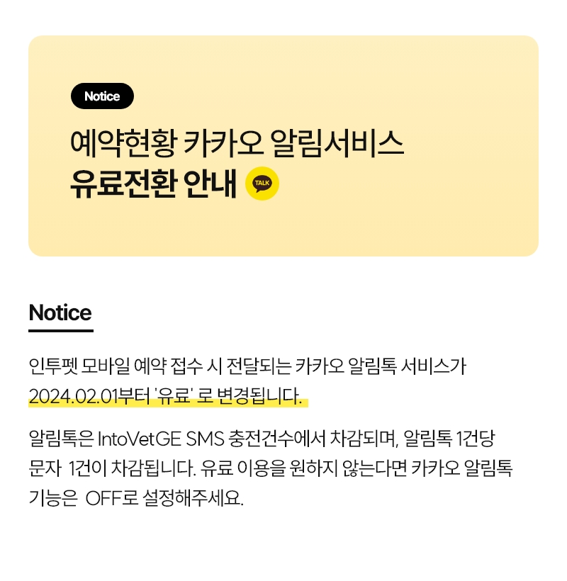 [인투링크 공지] 예약현황 카카오 알림톡 유료 전환 안내 - push 메시지는 무료로 이용할 수 있어요! :) 등록일 2025-02-28 다음글 [ 서비스 이용가이드 ] 리퍼시스템 2025-03-10 이전글 [인투링크 업데이트 ] 개인일정, 예약 데이터 연동 2025-02-28 목록