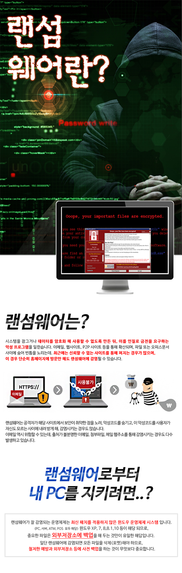 [필독] 랜섬웨어 윈도우즈 패치 관련 안내 등록일 2018-04-30 다음글 [안내] 마약류 통합관리시스템 연계 업데이트 사전 안내 2018-04-30 이전글 [필독] 랜섬웨어 바이러스 대처 안내 2018-04-30 목록