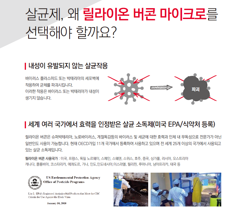 국내 유일 신종 코로나 사멸, 법정 감염병 바이러스 및 원인균 광범위 살균 소독제 '릴라이온 버콘 마이크로'가