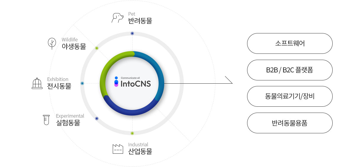 사업분야 유무선 네트워크 기반 Solution & Platform business 인투씨엔에스는 깊이 있고 풍부한 전문성을 갖추고 동물산업을 선도합니다. 다양한 동물산업 분야의 새로운 혁신으로 고객 가치를 창출합니다.