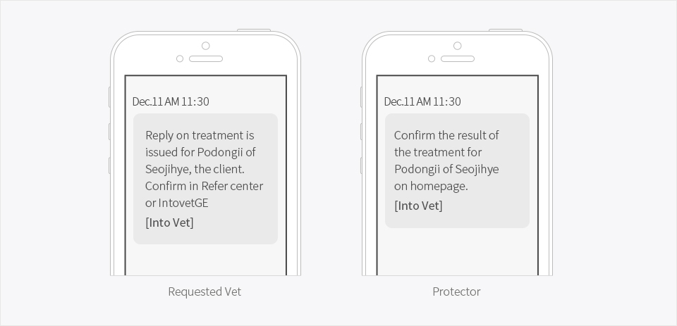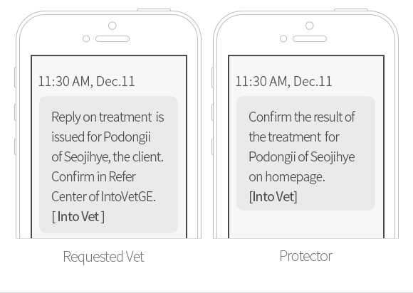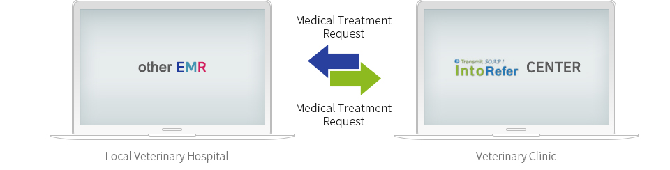 This system is one that you can request the patients' treatment through the homepage on the internet and reply the result of the request. Hospitals using IntoVetGE can request and reply on the program without any connection to the homepage.