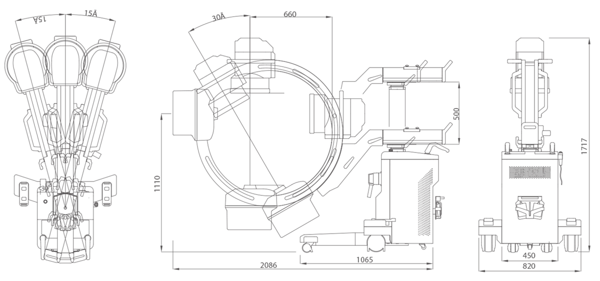 - 수평 회전 ±180˚ / 궤도 회전 ±120(90˚,-30˚) / 종 이동 ±500mm / 패닝 회전 ±12.5˚