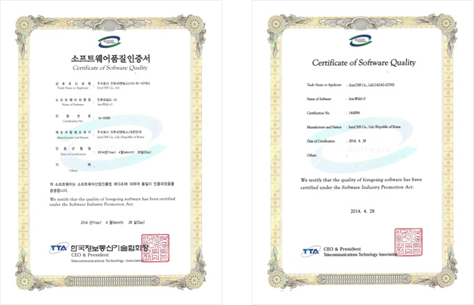 GS 인증(Good Software) 은 국제 표준에 근거, 엄격한 기능 및 성능 테스트를 통과한 소프트웨어에 부여하는 국가공인 품질마크로, IntoWild은 GS를 취득한 프로그램입니다.