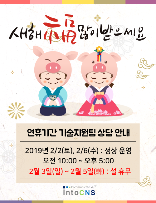 | 2019 설 연휴 기술지원팀 상담 안내입니다. |