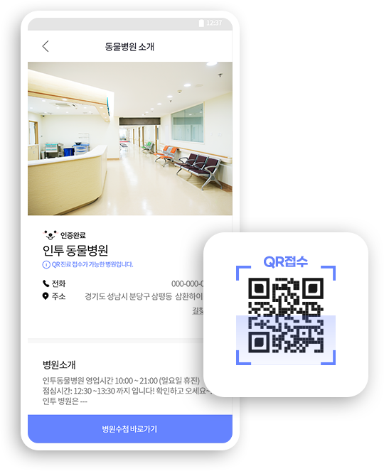 동물병원을 위한 인투펫 동물병원과 보호자를 이어주는 인투펫은 병원차트 연동을 통해 내원기록이 보호자 APP에 자동 기록되어 보호자의 내원율을 높여줍니다. 동물병원 진료안내 공지사항/소식 실시간 전달 QR 코드를 통한 간편 접수 가능 예방접종,내원내역,미용일정 등 선택적 정보 제공 가능 동물병원 내원예정일에 맞춰 보호자 push알림 제공 인쇄비용,분실 걱정 NO! 건강수첩 비용절감