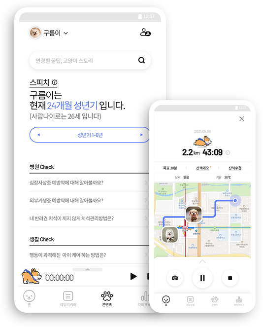보호자를 위한 인투펫 반려동물과 보호자의 행복한 동행을 위한 선택! 예방접종 일정, 내원 관리 등 간편한 스케줄 관리 초대기능을 통해 구성원들과 함께하는 동반 생활 관리 산책,식단,케어알림 등 일상생활에서의 건강관리 기능 제공 보호자,반려동물에 맞춘 다양한 콘텐츠 제공 포인트 혜택 제공